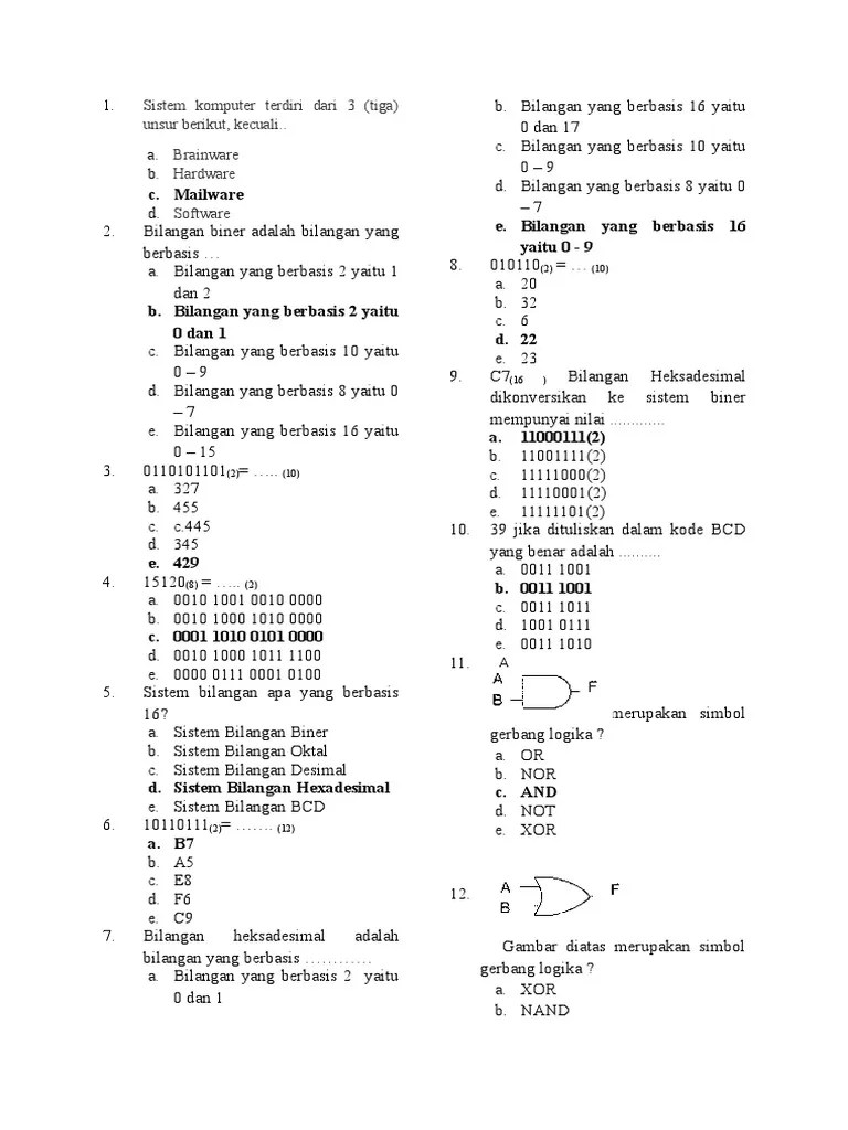 Soal sistem komputer kumpulan soal tkj kumpulan soal tkj kurikulum 2013 soal pilihan ganda dan jawaban sistem komputer smk soal pilihan ganda dan jawaban sistem komputer smk 1siswa mampu menyebutkan system bilangan yang berbasis 2 dan 16 22710 dikonversikan ke sistem biner mempunyai nilai.