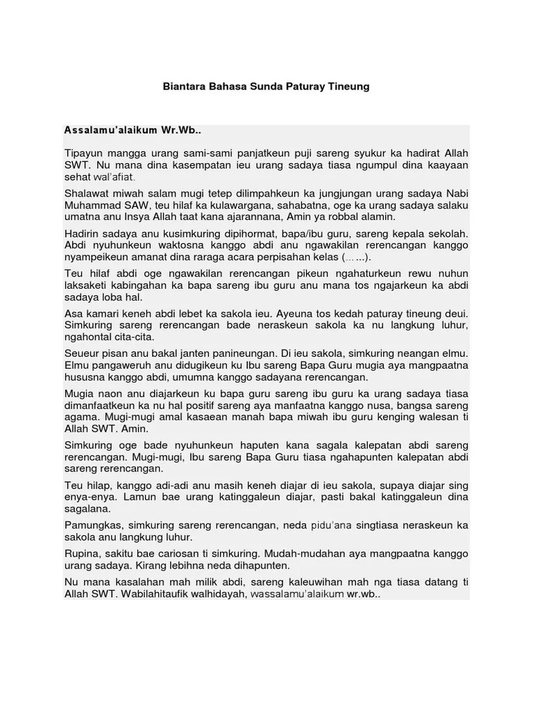 Jieun Bubuka Biantara - Contoh Pidato Bahasa Sunda Paturay Tineung - Conto bubuka biantara nyaeta saperti mangga urang sanggakeun puji sinareng sukur ka gusti allah swt, oge shalawat sinareng salam mugi ngocor .